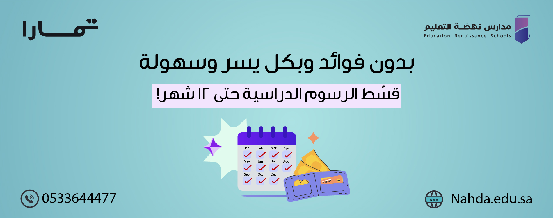 الآن بكل يسر وسهولة قسط الرسوم الدراسية لمدة تصل حتى 12 شهر وبدون فوائد إضافية!